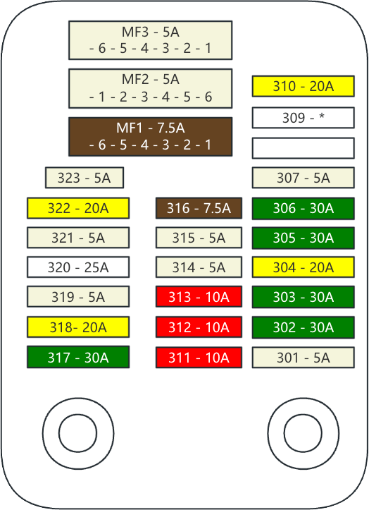 | MF3 | 5A | 米色 | 空调系统/暖风装置 驾驶辅助系统 胎压监测系统 USB充电接口 |
