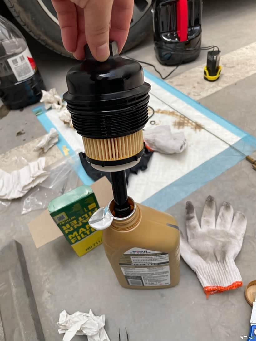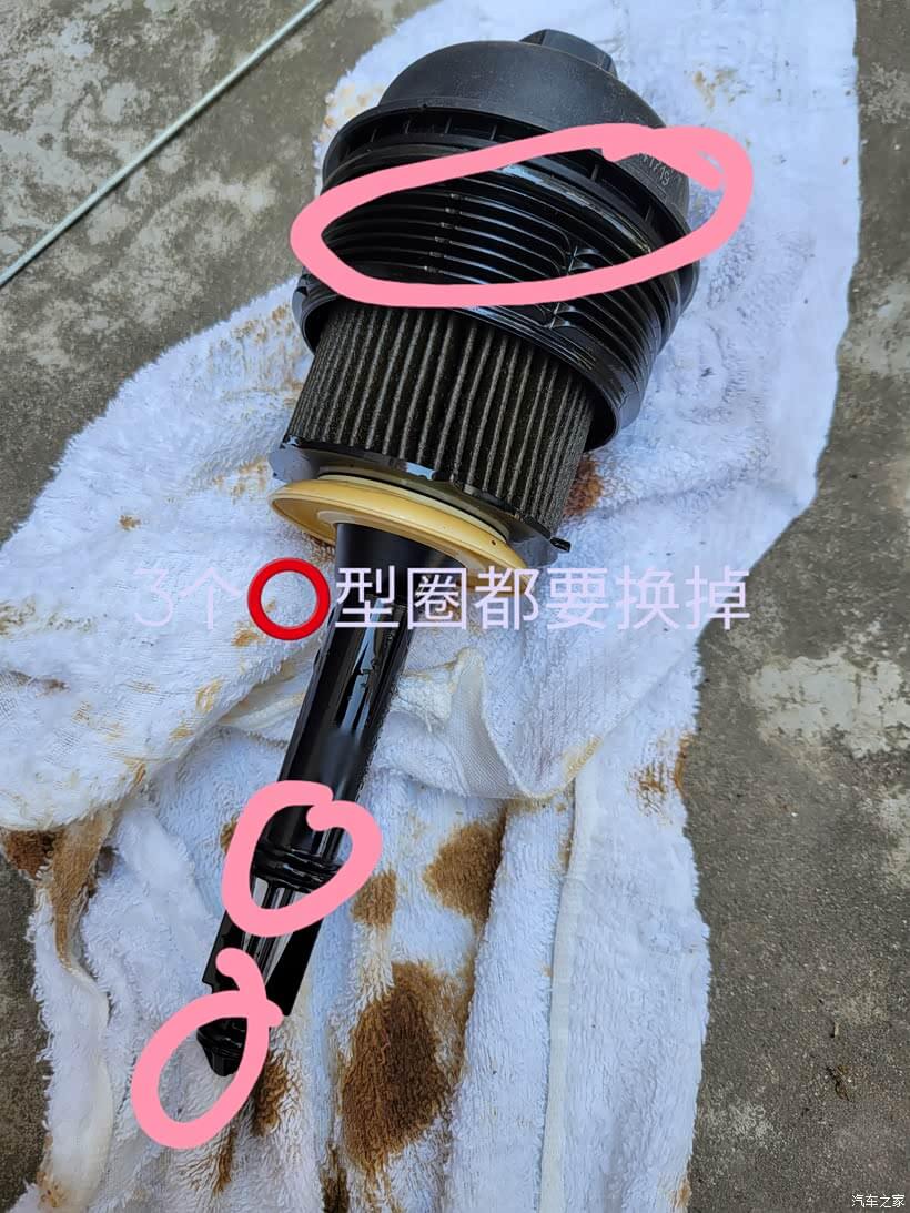 ⚠️ 因为机滤里面有气压,所以抽机油之前松开机滤,让残留的旧机油通过泄压淌到机油箱里一并被抽出。