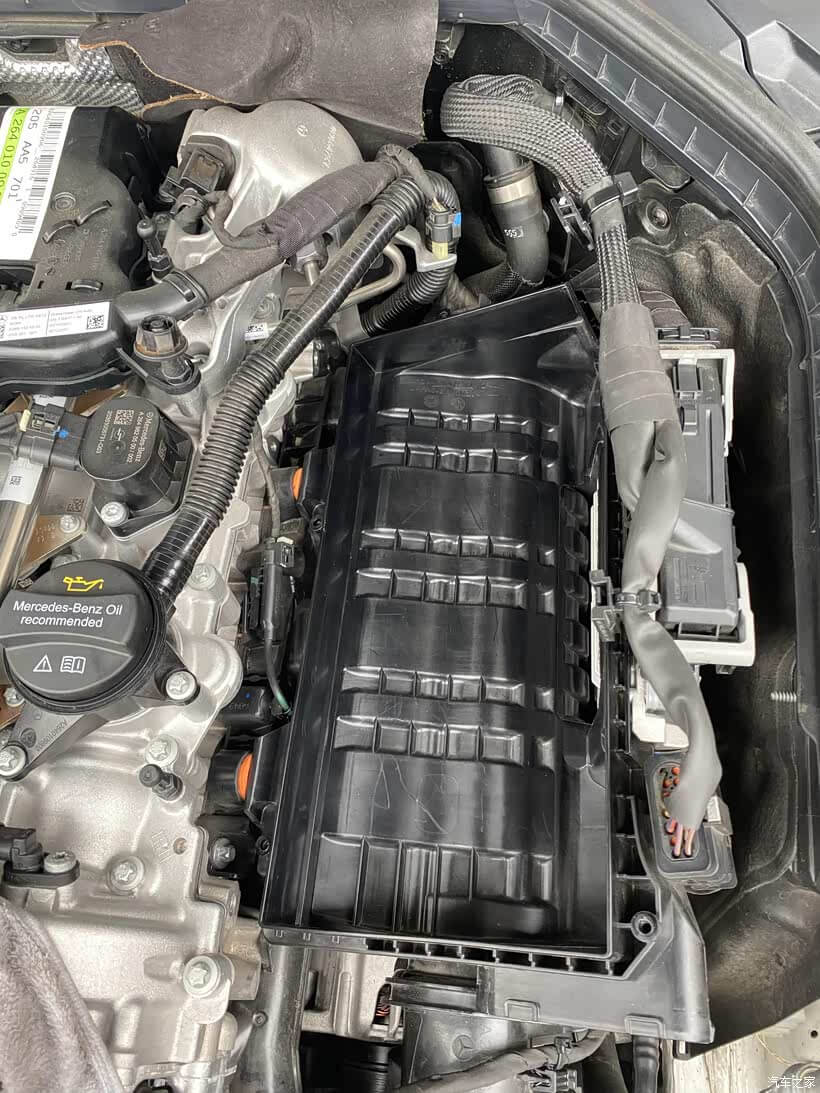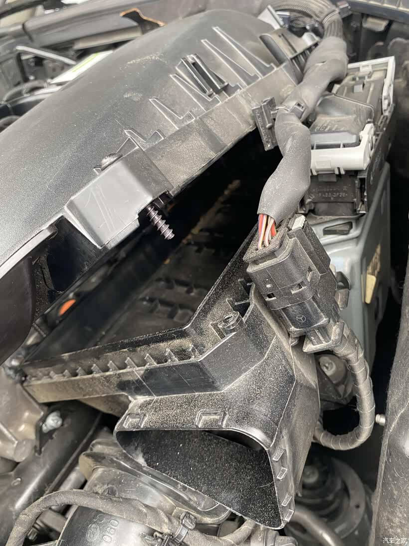 3、滤芯盒子下方还有一根一分二的真空管,拆卸要特别特别小心,一般这种真空管子都比较脆弱。这里我没有拔插头,因为新的比较紧,我直接拧掉螺丝,把一分二的头直接与空滤盒子分离开了,个人感觉这样操作更方便。