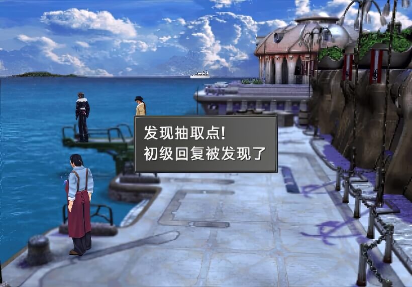 码头的初级回复(Cure)魔法抽取点在水中,不是很显眼。具体位置见上图。