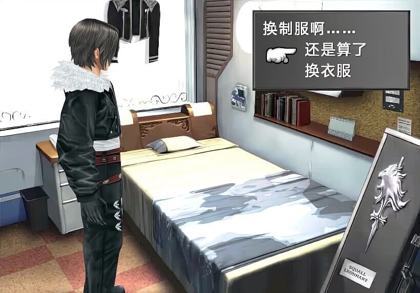 在学园正门与奎斯提斯分手后,斯考尔回到寝室更换制服。(调查床,选择第二项)