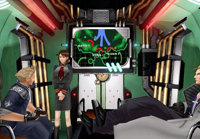 在高速登陆艇的船舱中,修(Xu)向大家介绍了此次任务的内容:援助多尔公国(Dollet),抵抗入侵的加尔巴迪亚(Galbadia)军队!