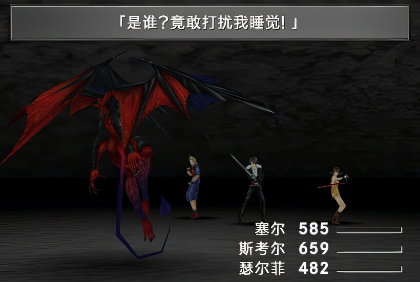 好在这个BOSS的技能都只是比例削减HP,只要能防住他偶尔使用的物理攻击,就会让难度降低不少。使用失明魔法,使之陷入黑暗状态,是个不错的战术。另外,这个BOSS是少数可以用重力魔法打的BOSS类敌人,而且我们对他使用重力魔法时,他反而还会对我方使用高级回复魔法,是个有趣的现象。