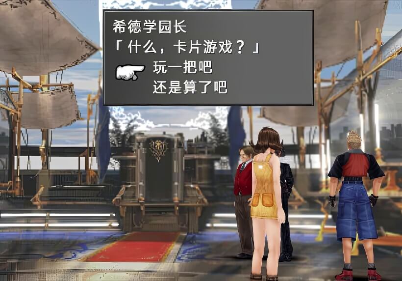 来到正门,席德(Cid)学园长校长向大家介绍了任务内容:去支援一个汀柏(Timber)的反抗组织。接着从旁边的教师那里可以听取联络暗号(但是那里还有猫头鹰),并了解到之所以只派遣3个队员的原因:报酬太少。
