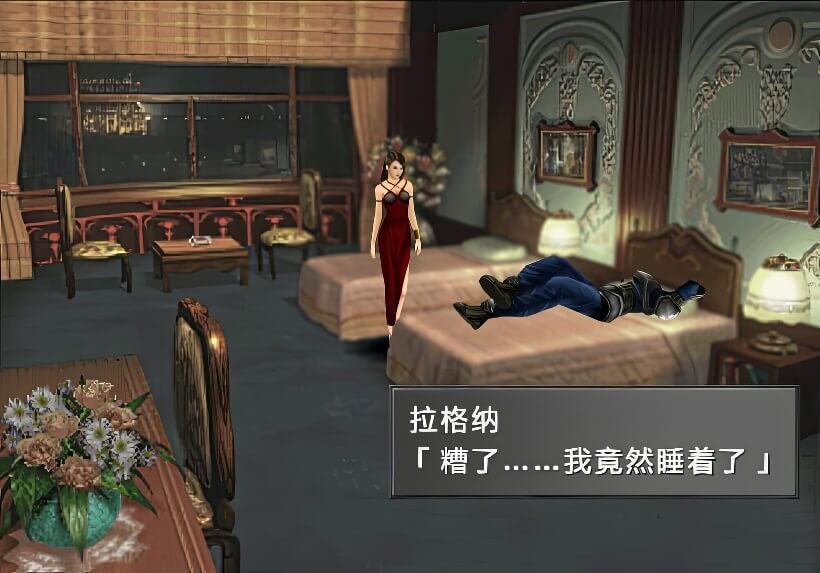 如果之前拿了巴拉姆镇旅馆二楼旧杂志的话,这里会出现拉格纳不胜酒力而醉倒在床的情节。而如果没有拿杂志或是拿了火车站地上的那本,则只会普通聊天。