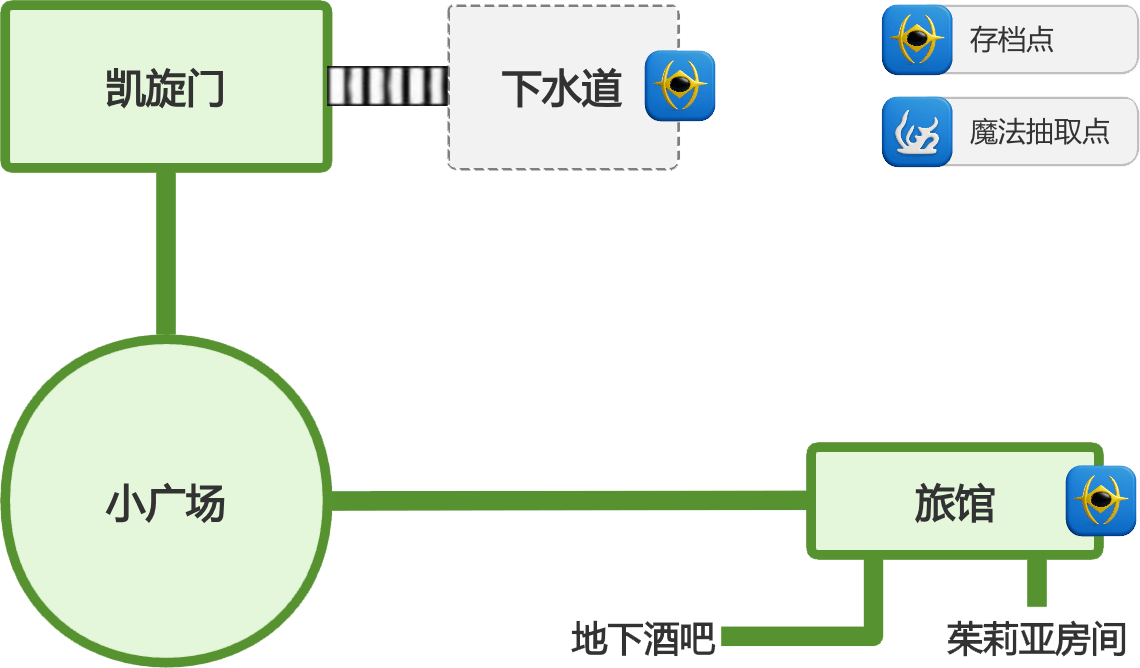 | 存档点 | 凯旋门下水道、旅馆内 |