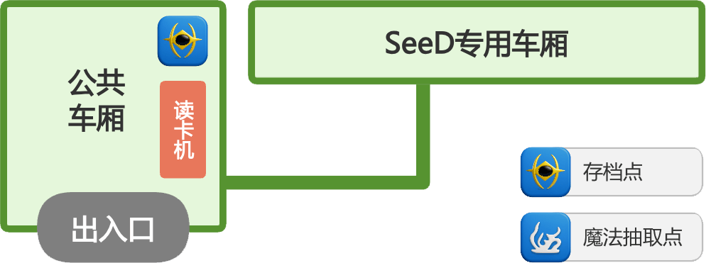 在公共车厢的门旁划卡便可以进入里面的SeeD专用车厢。而瑟尔菲则会在走廊哼歌。