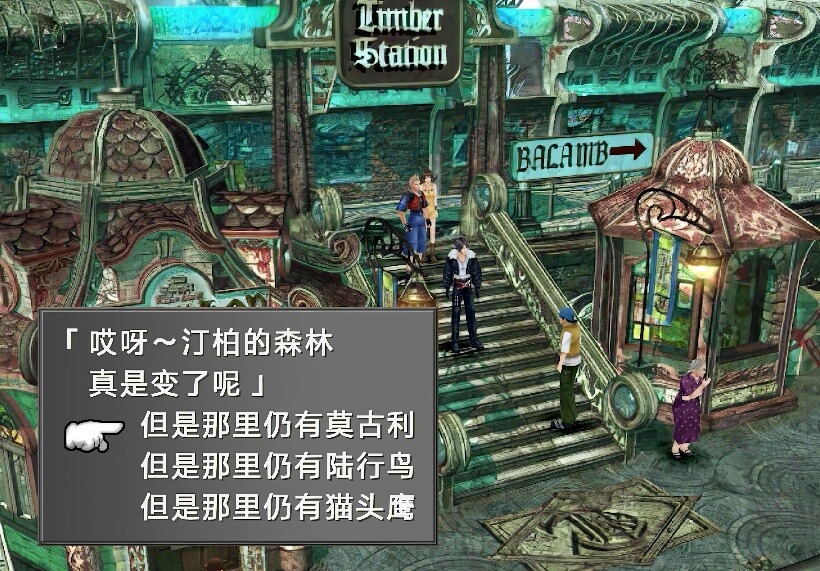 接下来莉诺雅加入队伍,需要选择一下第3名队员并装备GF和魔法。由于随后的汀柏篇章里并没有BOSS战,难度不高,所以选谁都无所谓。唯一要注意的是别忘了阅读宠物通讯杂志,并且在莉诺雅的特殊技菜单里设置要学习的技能。一切准备停当,便可以与瓦茨对话下车了。