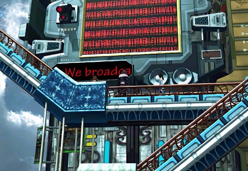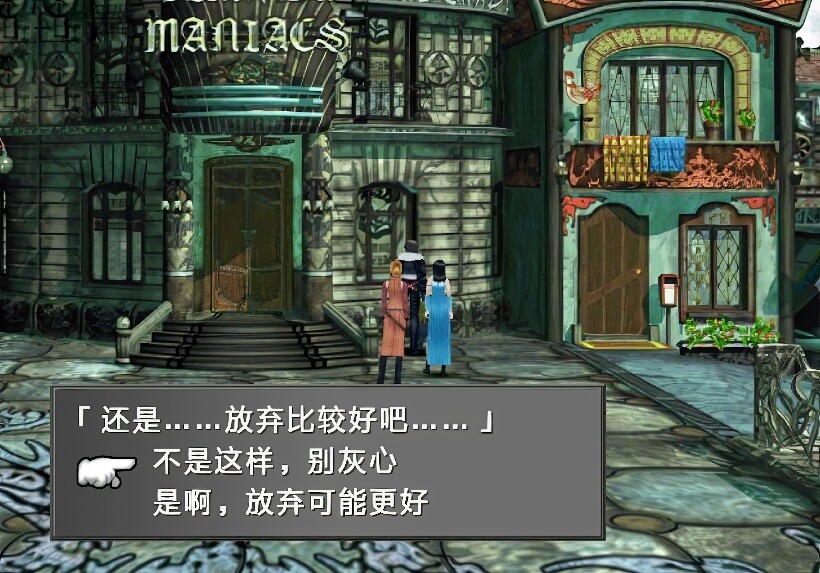 与杂志社门前坐着的男子谈话,得知他以能歌善舞的超级新闻记者为志愿,但是现在却有点灰心,此处对话的选项将影响这个男子今后的人生。只要选择了一次第一项“不是这样,别灰心”的话,那么在进入disc2之后再度与他交谈,他将表明自己已变为一位了不起的超级记者,并且以宠物的名牌作为答谢的礼物。若是没有选,则就只能听到“不但没能成为记者,而且还与女友吵架”的抱怨。