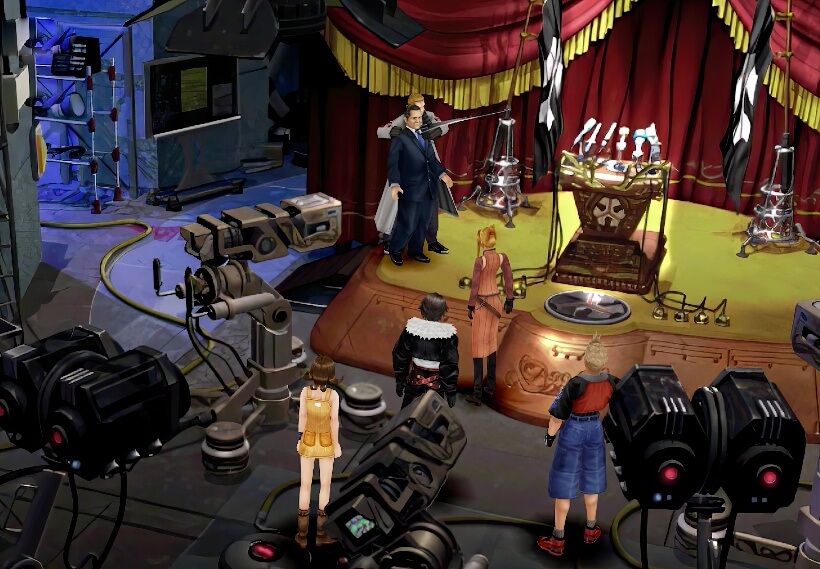 进入电视台,对话得知赛法此次是擅自行动,来帮忙绑架迪领总统,而奎斯提斯是来抓他回去的。争吵中,塞尔竟无意间说出他们来自学园(Garden),使得总统扬言自己一旦出事,加尔巴迪亚将用武力夷平学园。进退两难的赛法挟持着总统向后台退去。