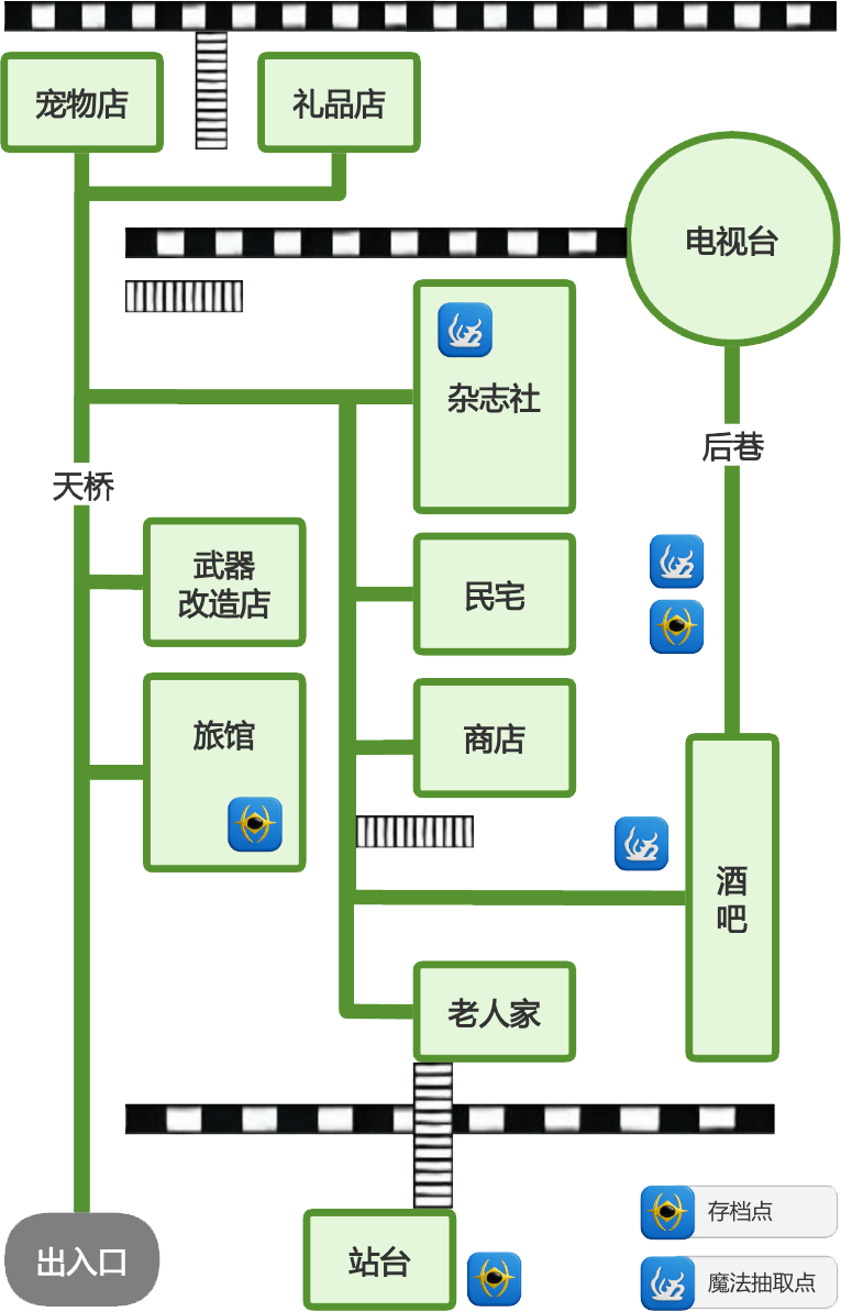 | 存档点 | 旅馆、酒吧后巷、站台(通往多尔)(隐藏) |