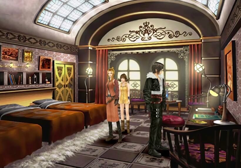 | 杀人蜥蜴(Geezard)卡片[1]、回复药(Potion)、不死鸟之尾(Phoenix Down)、金针(Soft)、解毒剂(Antidote)、神秘学II (Occult Fan II ) | 酒吧老板私人房间(左下书堆中) |