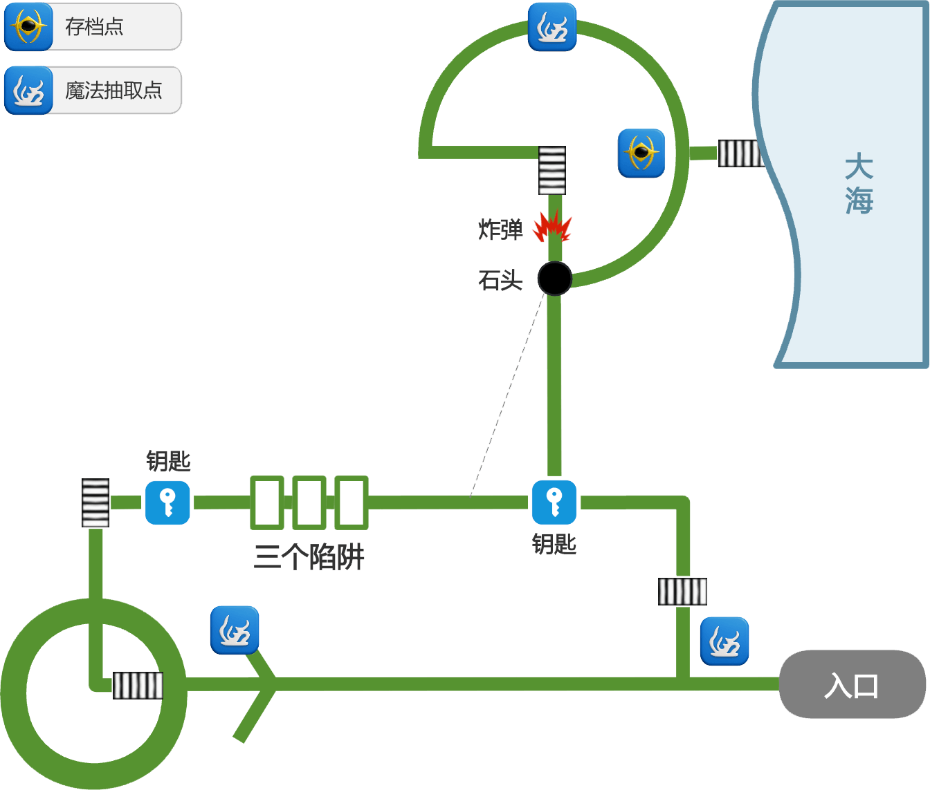 请参照下面的地形示意图,在下列地点正确的破解谜题吧。
