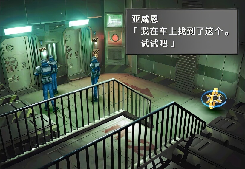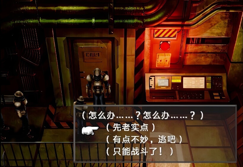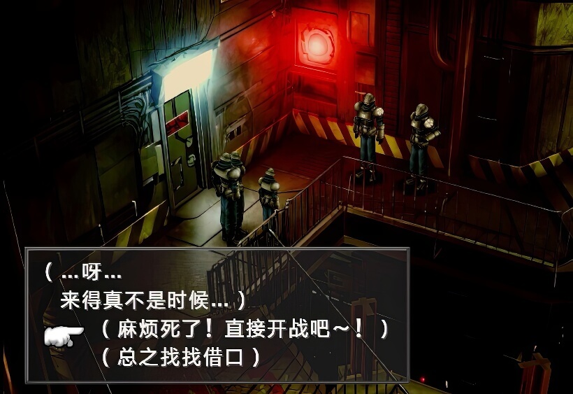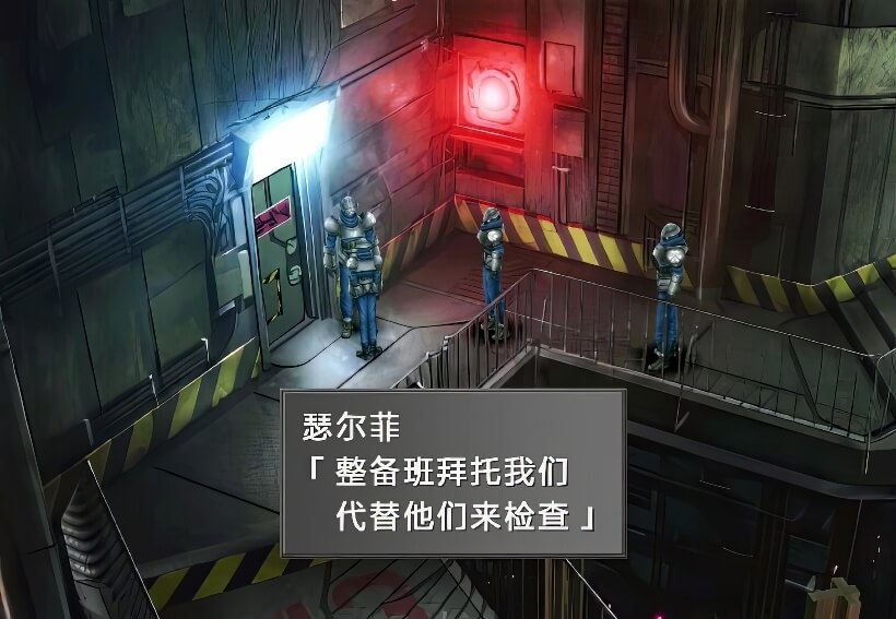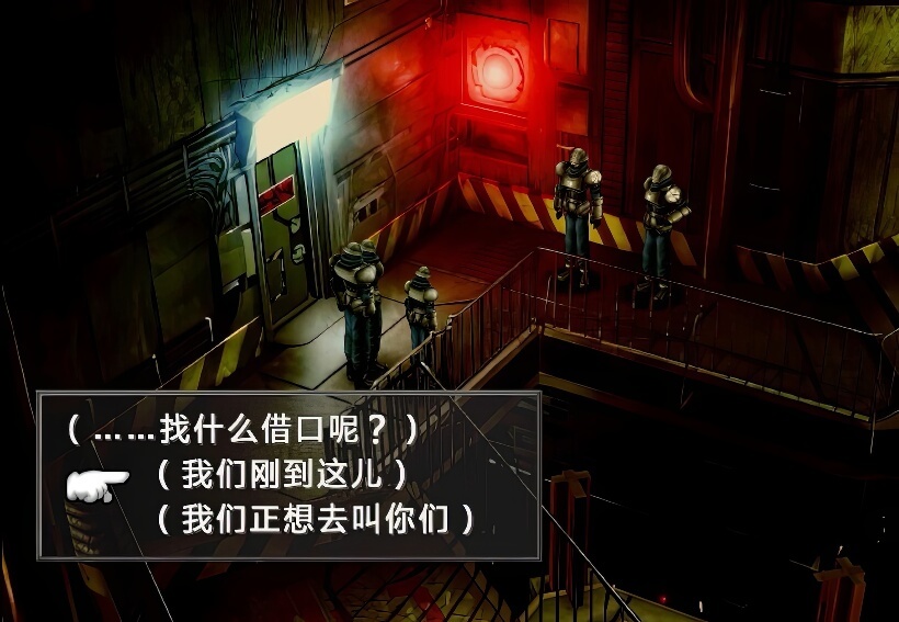 正确选择之后,两个整备兵会进入配电室,我方跟着进入,之后关门打狗,出现惨叫声……