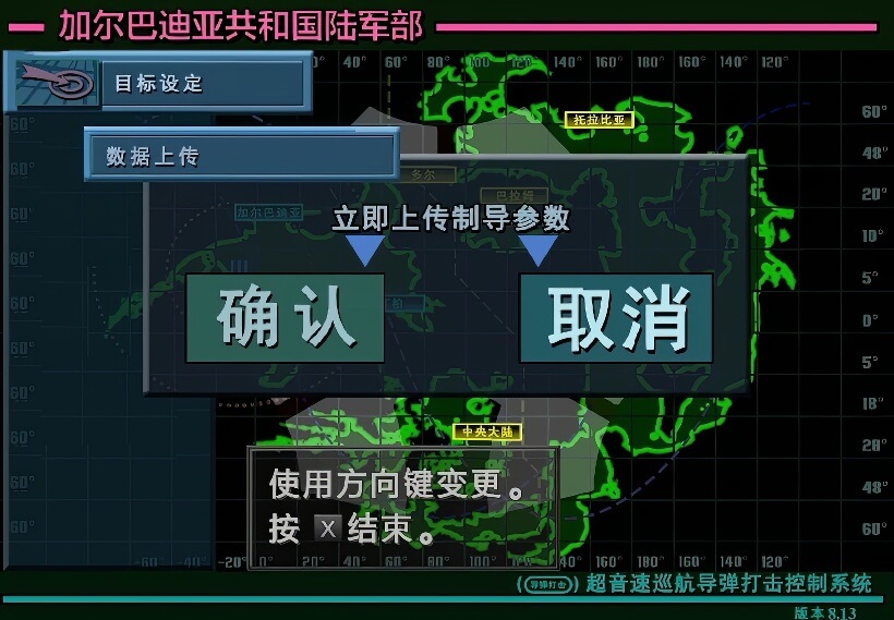 - 装备确认(按左右方向键,可以观看导弹发射架和导弹的详细信息)