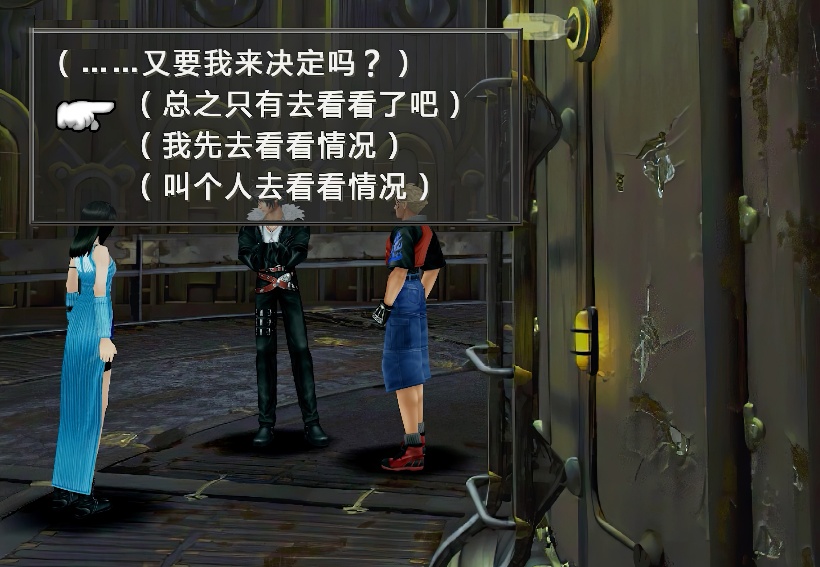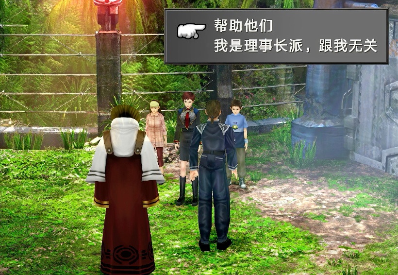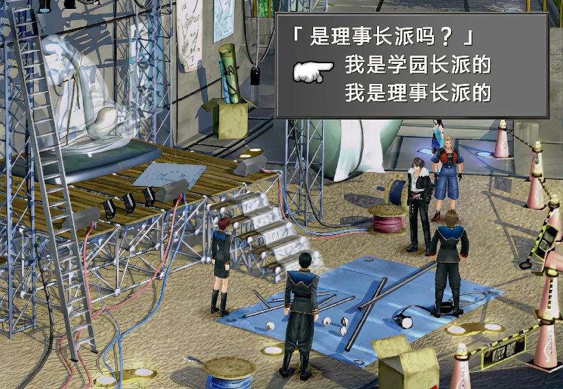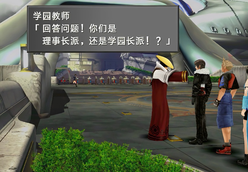 到达校庭最里面,会跳出来三名SeeD,询问我方是哪个派别。