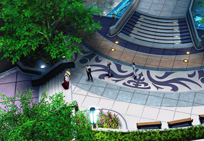 进入校庭后,会发现前方跑来一个教师,如果是学园长派,截住他对话就会发生与爆弹和冰结之眼的战斗;而如果是理事长派,则什么也不会发生。