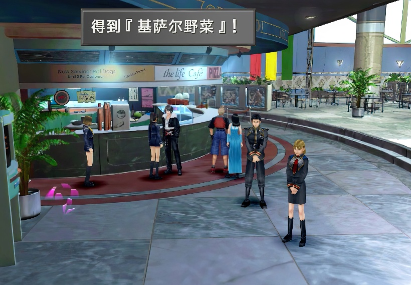 与左侧第二名女学生对话,可得到基萨尔野菜,这是食堂的过关条件。如果有塞尔在队伍中的话,会发生塞尔想吃热狗面包,可惜被刚刚都被吃光了的情节。
