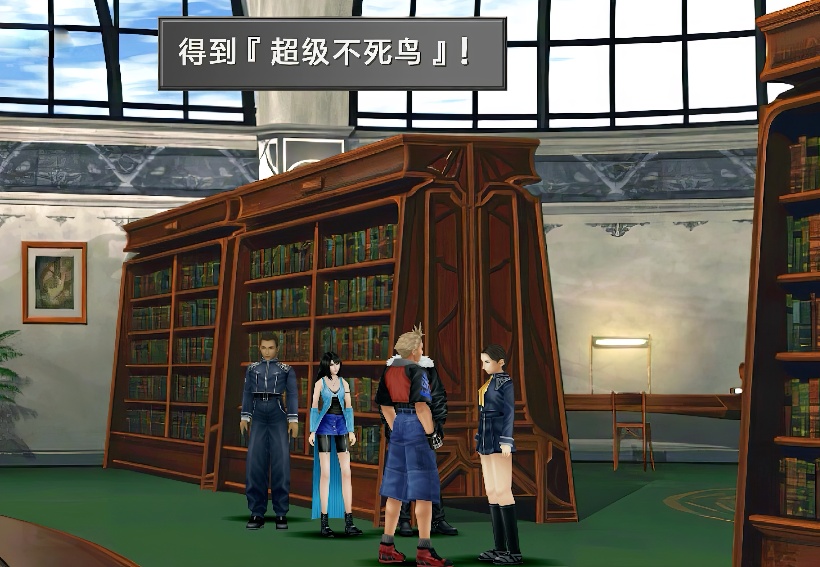 之后与辫子女孩对话,可得到万能药,而如果队伍中有塞尔的话,将得到超级不死鸟(Mega Phoenix),这是图书馆的过关条件。