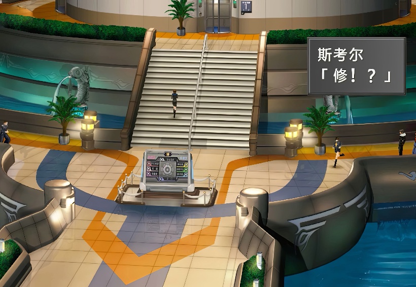 停车场内有个学园长席德的幻影,走过去才发现是假的,这里的SeeD告诉斯考尔等人,这是修的主意,她是抵抗运动的指挥(这段话与上面食堂的类似,如果已经去过食堂,则对话会简略很多),这个消息是找到修的条件之一。