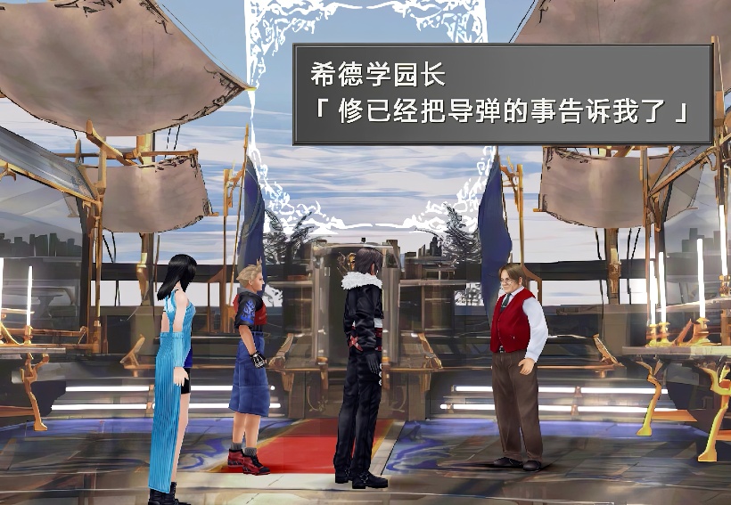 乘电梯去3楼,将导弹袭击的事情告诉学园长席德。席德说校内广播已经被切断了,无法通知,只能靠口头通知,让斯考尔等和修、风神、雷神一起去通知,然后也尽快避难,而他自己则有另一个办法,或许能拯救学园。