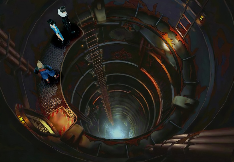一直沿着梯子往上爬,梯子却突然折断了,斯考尔掉落到上面一个房间里。这里的控制台可以操作,按动按钮之后,之前以为是底层的外侧地板全部打开了,原来还可以继续往下走。