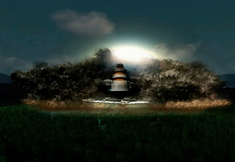 学园擦着巴拉姆镇飞过,最终驶入大海,并且漂浮了起来。