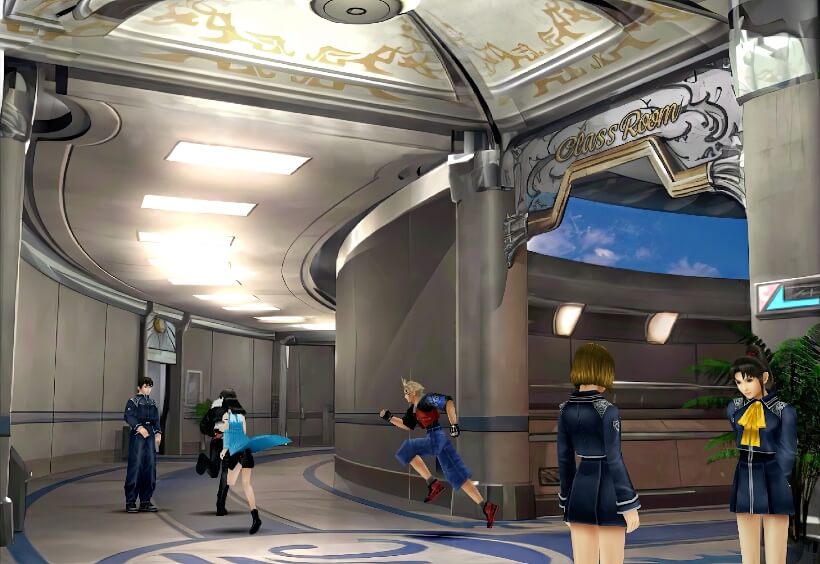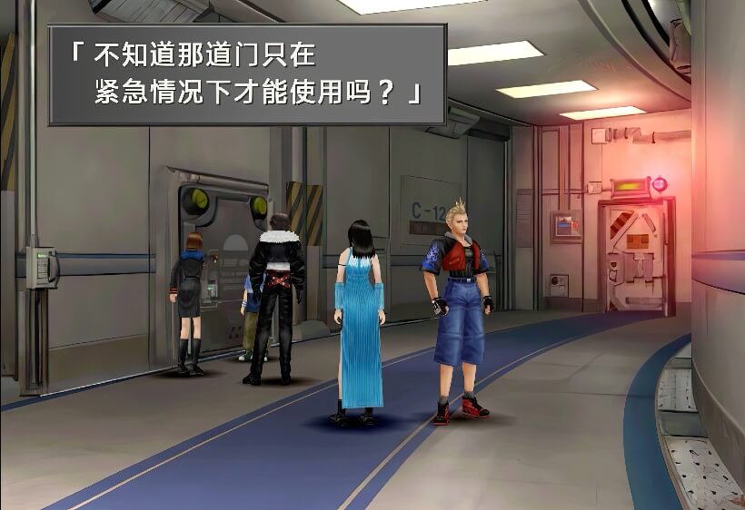 打倒诺古后,在2楼里侧走廊,会遇到一个小男孩,与他对话,可得知他对旁边的门非常好奇,观察他一会之后,他会去推那扇门,这时,一个女性SeeD出现,训斥了他一顿,并告诉他这里是紧急出口,不可乱动。这个事件是提醒大家这里有个紧急出口,以后学园大战里要用到……