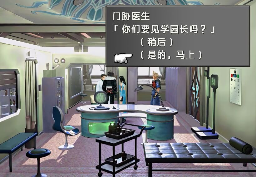 前往保健室,与门胁医生对话,选择立刻要见学园长。之后进入病房,向学园长席德报告此事。