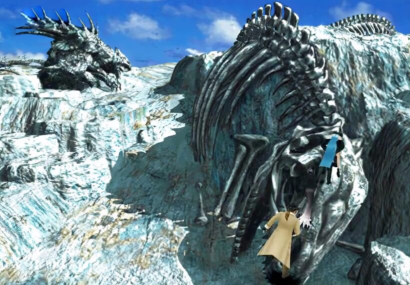 此处场景右侧骨头可以爬上去,之后一直走到头,途中有隐藏的陨石魔法抽取点,尽头处是个 高级闪电抽取点。从尽头处可以跳到大路上去(按确定键),这样可以不用走回头路。