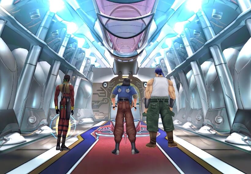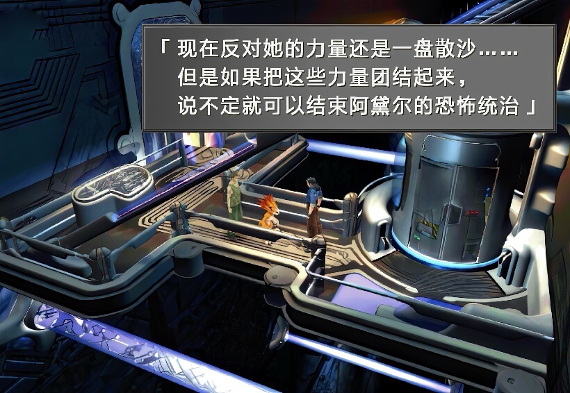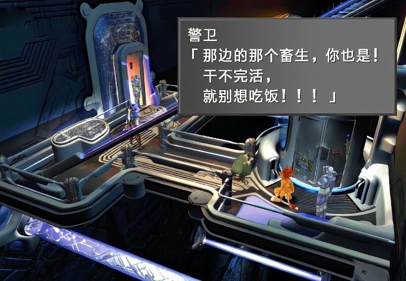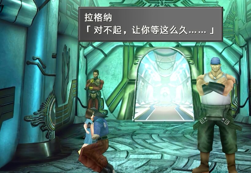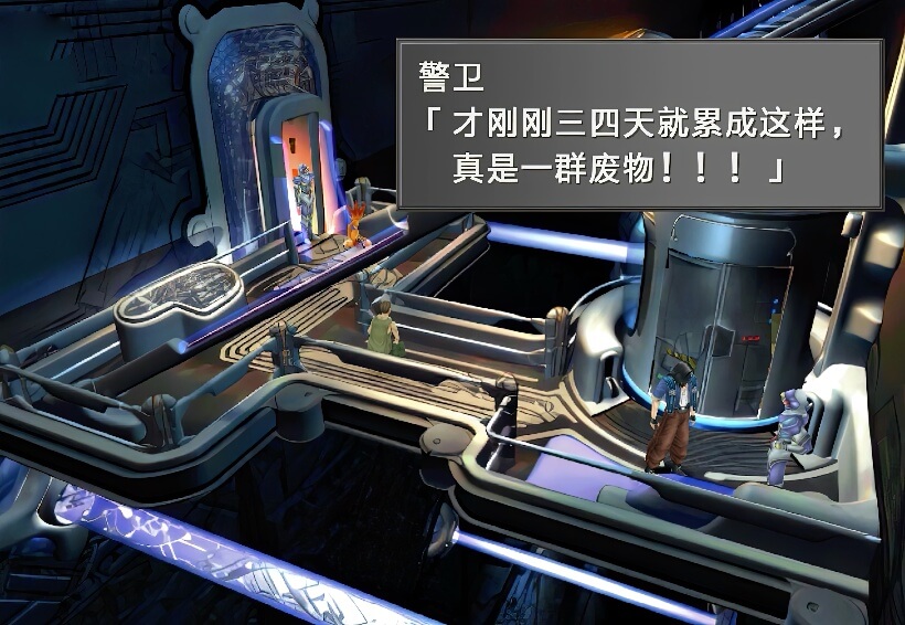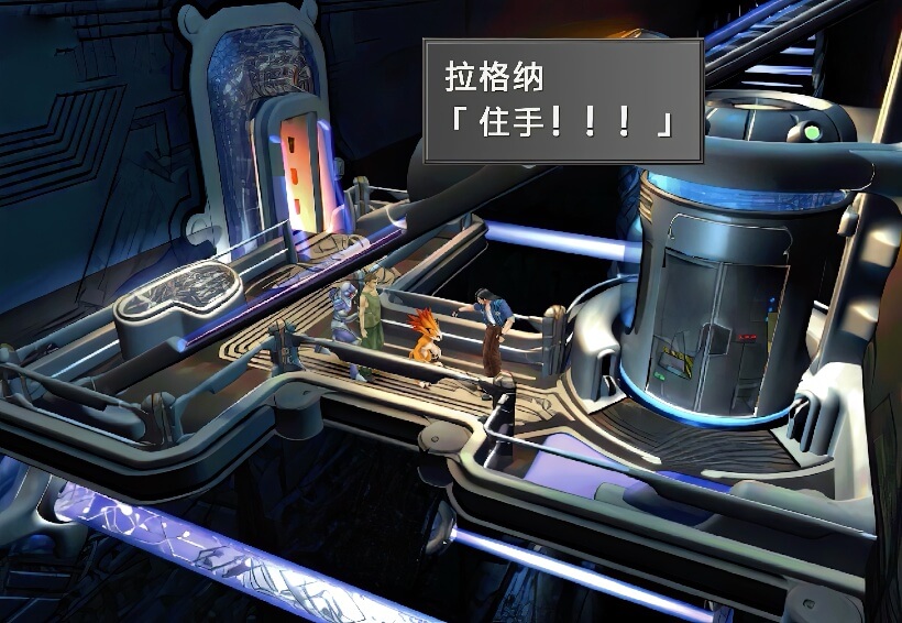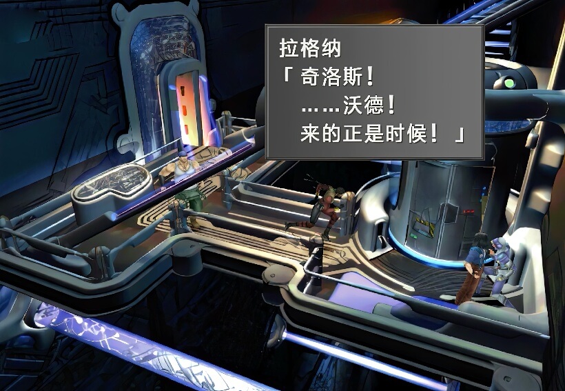 打倒该名士兵之后,从电梯方向又下来一个士兵,拉格纳将此士兵一拳打晕,然后让工人和蒙巴乘坐电梯先逃走,这时,奇洛斯和沃德赶到,他们身后还追来了艾斯达士兵,此时出现选项,建议选择第一项进入菜单,因为奇洛斯和沃德是没有装备GF的。之后选择第二项即可开战。