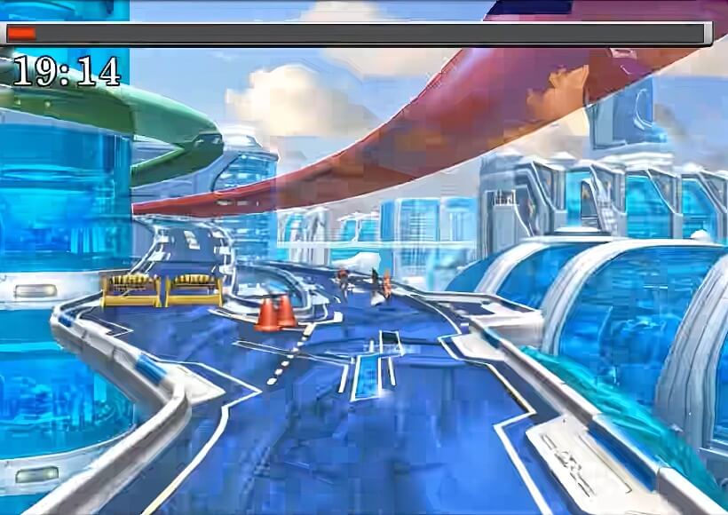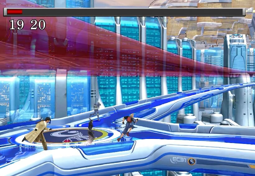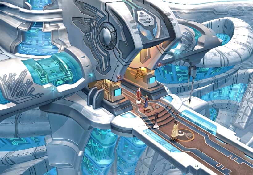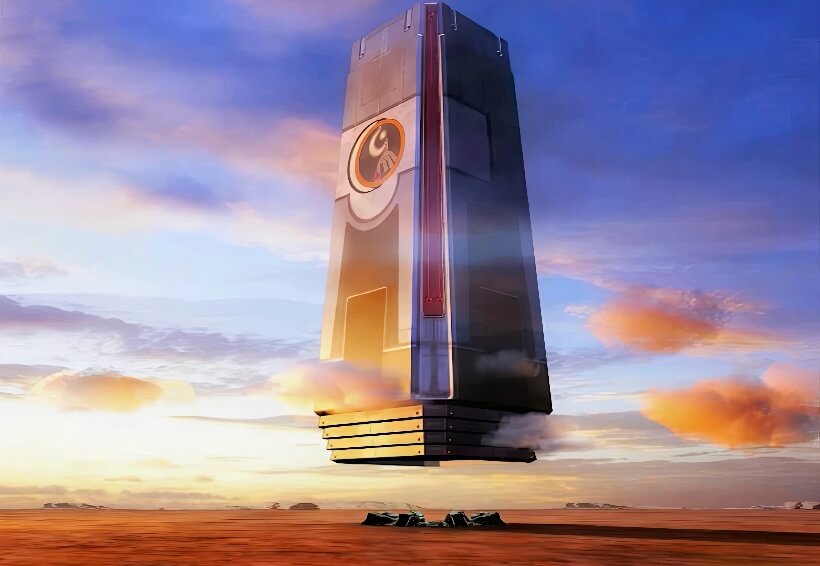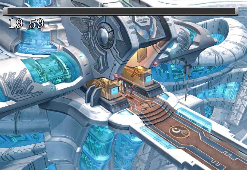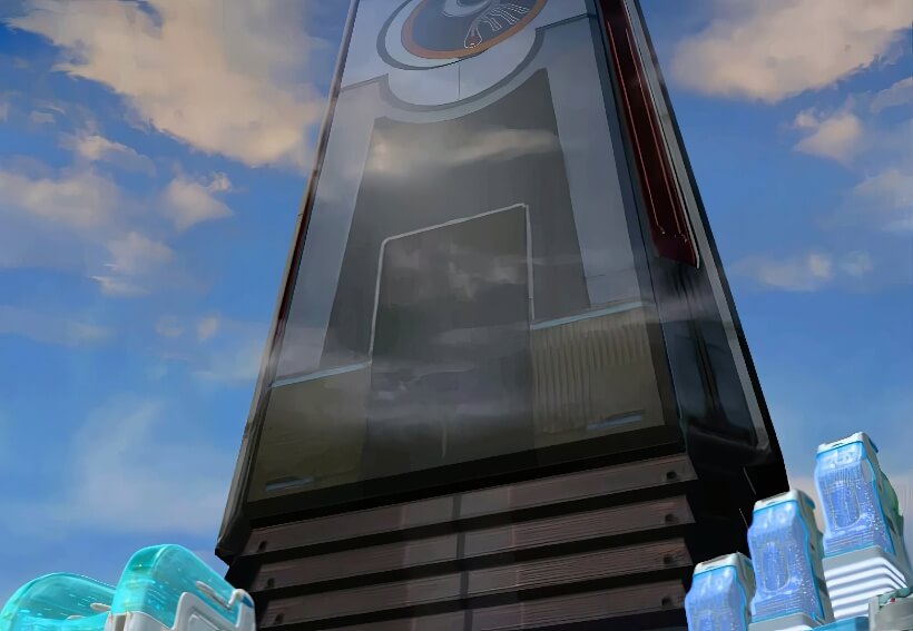 跑到屋外,只见一座遮天蔽日的巨大长方体建筑物正在从艾斯达市空中飞过。 担心欧迪恩博士有危险,塞尔小队决定立刻赶回艾斯达市。