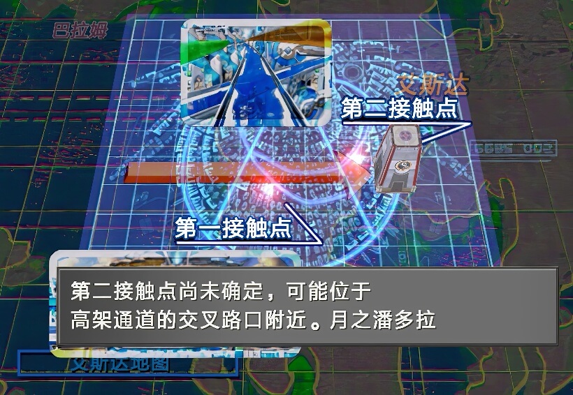 与欧迪恩博士对话,博士给塞尔小队观看了计算出来的月之箱行进轨迹,其将会穿过艾斯达市区,从欧迪恩实验室附近向商店街方向行进,总耗时约为20分钟,途中有三个地点可以登上月之箱。