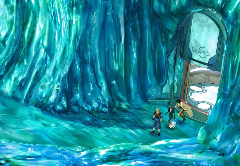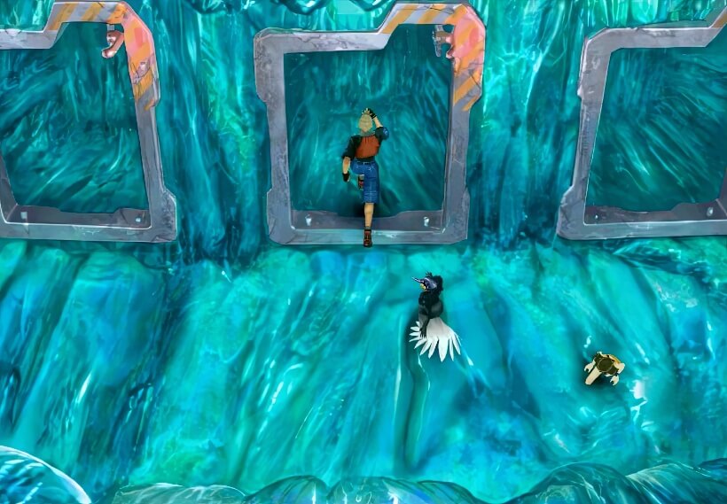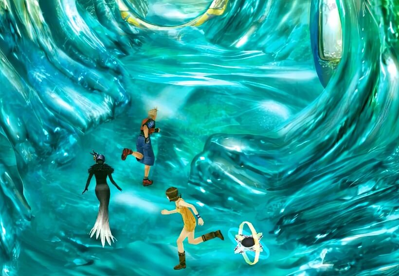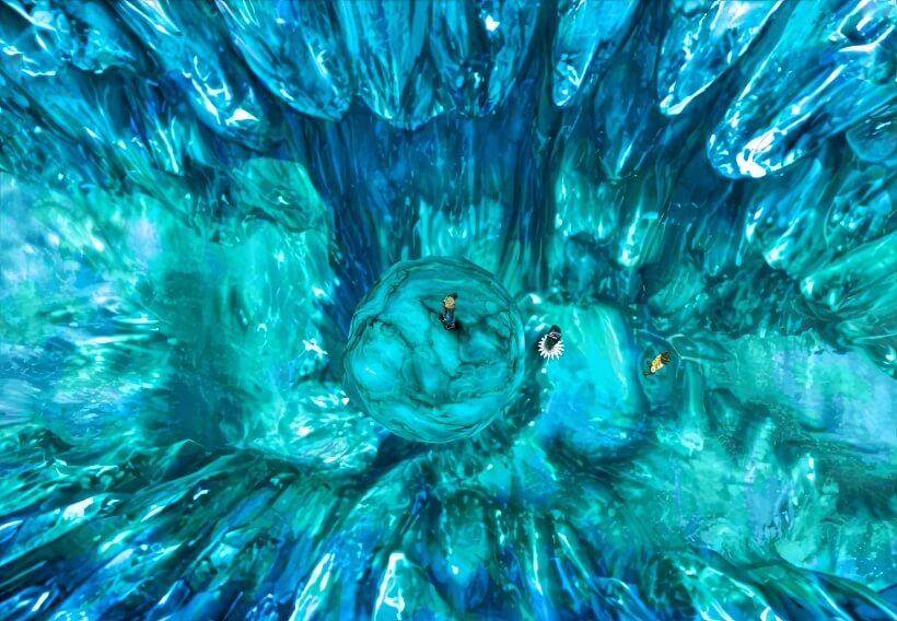 首先进入3号门。注意:左边地上有块巨石,这是只有在中央挖掘现场破解过谜题才会是现在这种可以通过的样子。不过不用往左边去,并没有物品可取得(左边通向中层,是disc3末尾飞空艇攻入月之箱的初始位置)。