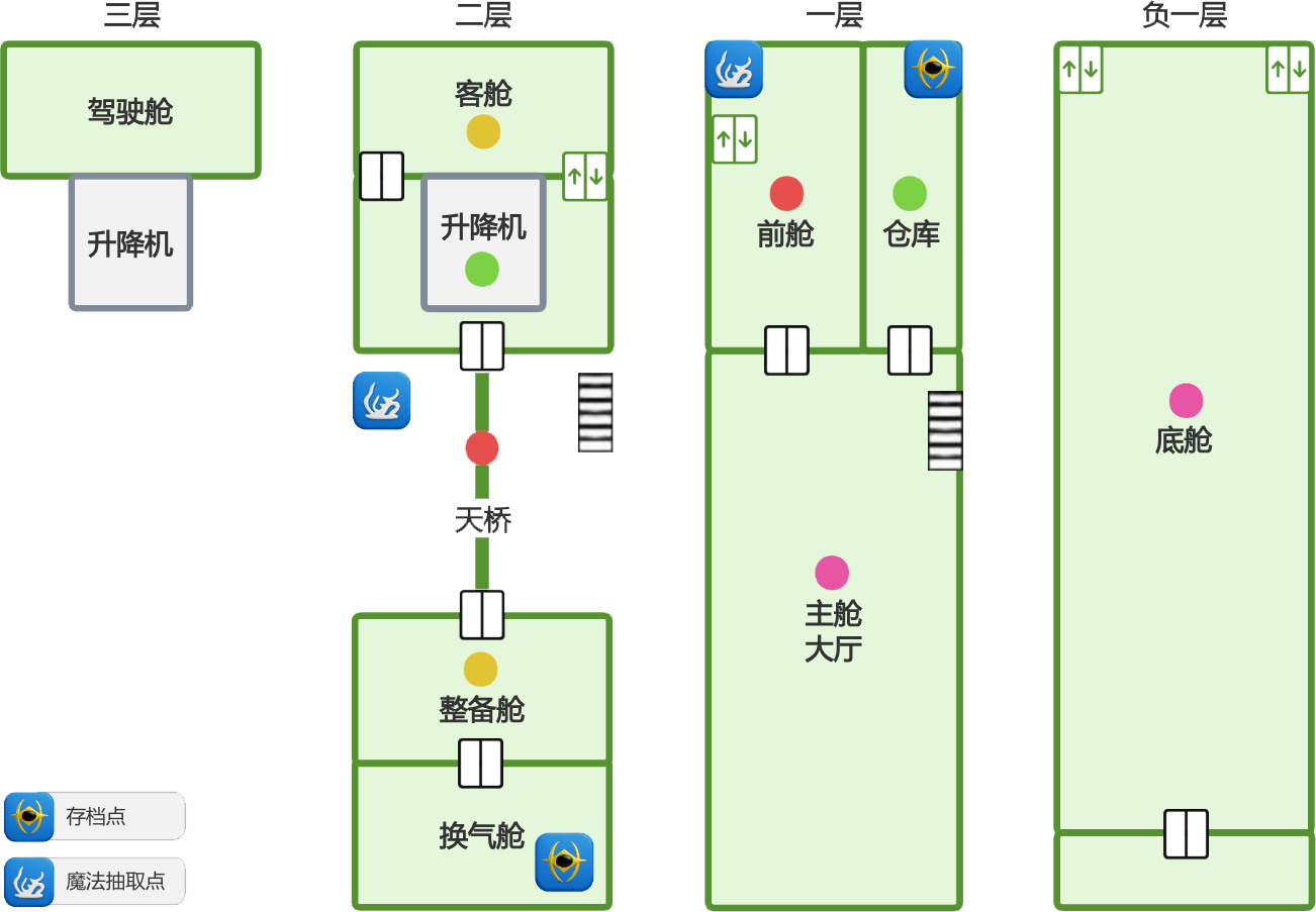 绿色、一层升降台间