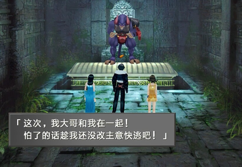 当右走转出墓穴后,再进入,直走,最后将遭遇赛克雷特+米洛陶斯的牛头兄弟组合。打倒他们,即可取得GF牛兄牛弟(Brothers)。