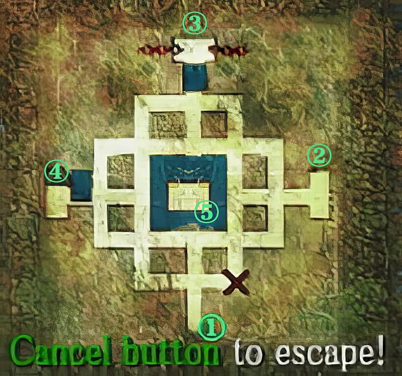 按照遇岔道都向右走的规律,最终将遇到3次“死胡同”,而第四次则是走出墓穴。下面将对这3次死路尽头的谜题进行讲解。简易说明见上面的“路径指示图”。