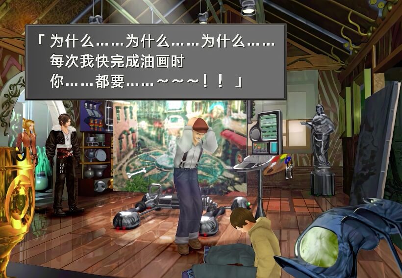 要完成这个事件很简单:每次去民宅发现艺术家被气走,先调查一下画布,出现“我知道这是哪”的对话,看看画了哪个场景,然后去该场景调查狗狗,即可取得物品。一共循环3次。
