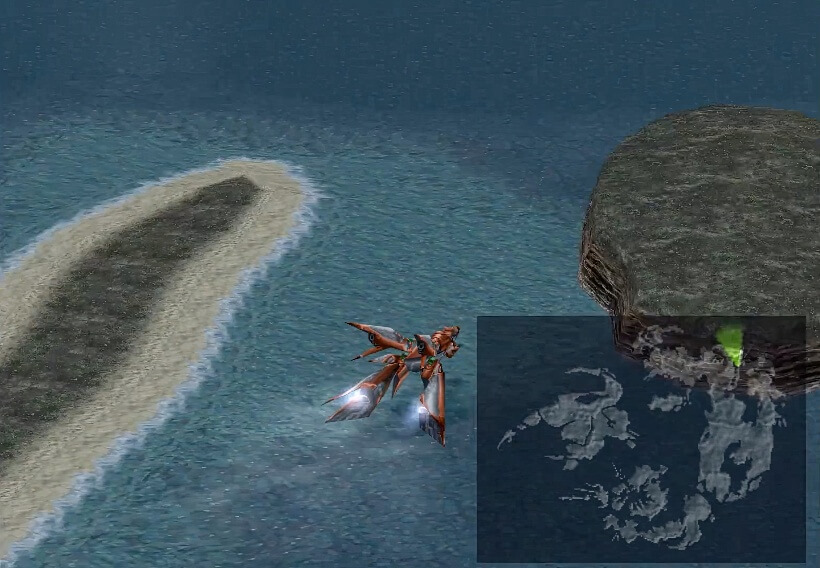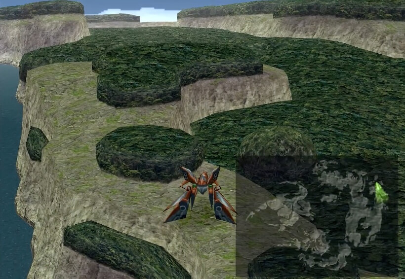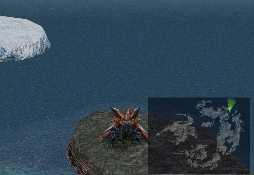 - 第4个地点这个小岛是托拉比亚的石南半岛(トラビア·ヒアデス半島/Trabia - Heath Peninsula)延伸出来的一个小岛屿,从飞空艇视角看是如下这个样子。